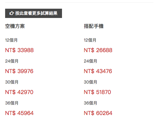 透過更多的試算結果,我們可以查看到本身使用空機方案越久其實較搭配手機方案的還省,我覺得對我自己來說其實還蠻方便的。